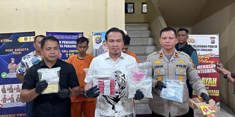 PEKANBARU – Polsek Sukajadi berhasil menangkap dua pengedar narkotika jaringan internasional di Jalan Merak Sakti, Kelurahan Simpang Baru, Kecamatan Binawidya, Pekanbaru, pada Minggu, 4 Agustus 2024.